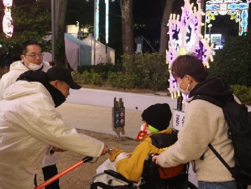 阪神淡路大震災の犠牲者への鎮魂と復興の祈りをこめて開催される、神戸ルミナリエ。1月28日(ルミナリエ開催期間の2日前)車いすのかたや高齢者のかたに、混雑を避けゆっくりと鑑賞していただけるよう「神戸ルミナリエハートフルデー」が開催されました。